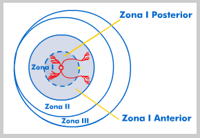 La zona I puede subdividirse en dos zonas: zona I posterior y zona