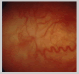 zonas más rojizas que corresponden a neovasos y pueden extenderse